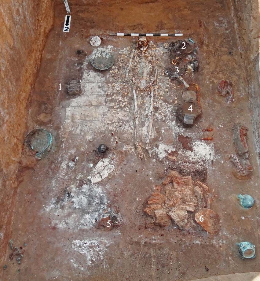 Рассказав вам, дорогие читатели, о стеклянном флакончике для косметического средства из погребения сарматской "жрицы" в Филипповском могильнике, я решила продолжить тему и показать еще несколько вещей, которые соплеменники "жрицы" дали ей в загробный мир. Итак, на фотографии захоронения № 2 кургана 1 можно легко заметить серебряную фиалу с чеканкой в виде розетты на дне (слева у плеча "жрицы") и зеркало. Бронзовое литое зеркало в инвентаре "жрицы", конечно, присутствовало, а фиал было несколько, но особо стоит остановится на том зеркале, что лежит справа от костяка. В изготовлении зеркала использовали бронзу, серебро и золото, а среди техник, в которых оно исполнено, тауширование (это инкрустация одного металла другим) и плакировка (это тоже вариант нанесения одного металла на другой). Само собой – ещё и гравировка. Вообще бронзовые зеркала – частая находка в погребениях женщин. И специалисты отмечают, что их производство – весьма сложный и трудоемкий процесс: горячая ковка с последую