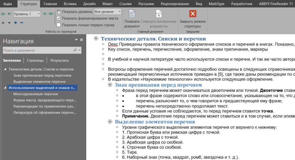 В этой статье расскажу о создании структуры документа в MS Word. Структура позволит создать автоматическое оглавление, менять одновременно стиль всех заголовков одного уровня, упростит навигацию и…
