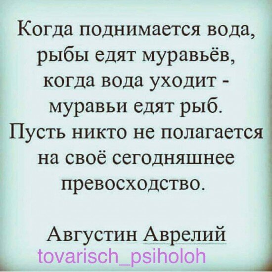 Мы очень любим восседать на своём превосходстве в чем-то. " Вот я какой, у меня получилось. Я - крутой, умею справляться, умею быть на высоте, не то, что этот неудачник". Забываем, что жизнь нам подбрасывает такие ситуации, когда из удачников мы очень быстро превращаемся в растерянных неудачников. Помните, как в один день неудачник стал удачником, а удачник неудачником в замечательной сказке Сельмы Лагерлёф "Путешествие Нильса с дикими гусями"? Бывает, что человеку нужно созреть и внутренне, и чтобы условия сложились для удачи, а у другого в жизни всё легко получается, но потом вдруг, на первый взгляд, резко наступает чёрная полоса. Люди легко ставят штампы: "удачник", " неудачник", забывая, что в каждом из нас есть ресурсы, внутренние сокровища. И им может в любой момент прийти черёд. Если ещё самому начать движение вперёд. Каждый сталкивается с кризисами, каждый переживает чёрную полосу. Это законы жизни. Как мы сможем выстоять в них? Найдём ли силы? Найдём ли новый смысл? Вот, чт
