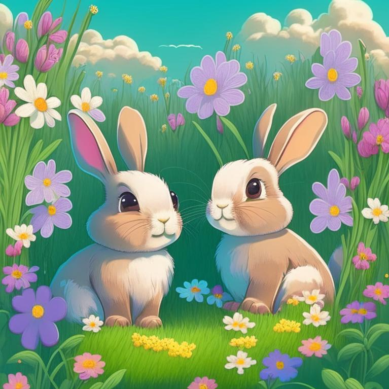 Жили-были в лесу два зайчика, Малыш и Белка. Они были лучшими друзьями и всегда проводили время вместе. У них была общая мечта - найти волшебную полянку, где цветы всегда расцветали, а пение птиц слышно было круглый год.