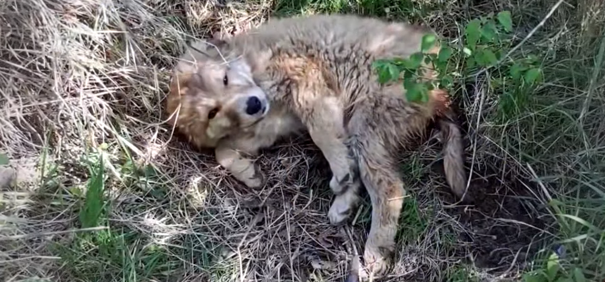 Раненый щенок скулил и звал на помощь лежа в канаве!