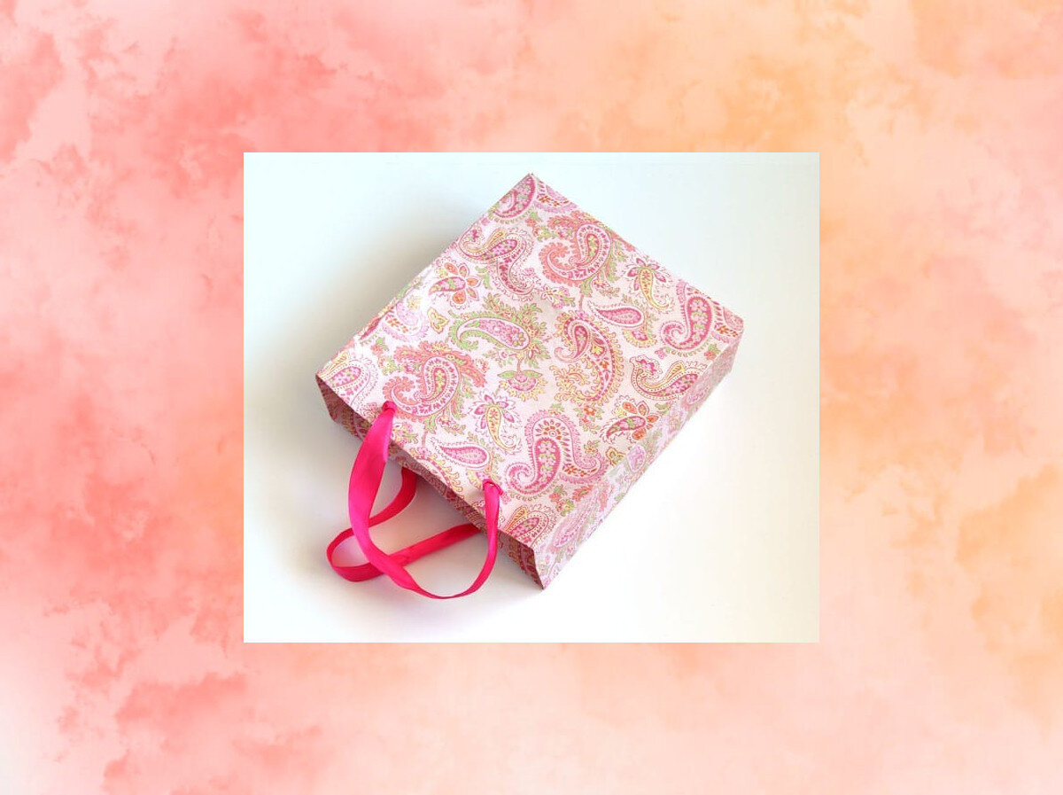 Прочность вашего пакета будет зависеть от материала, который вы используете. Стоит учесть: если ваш подарок тяжёлый, и вы не хотите, чтобы пакет порвался, берите бумагу поплотнее и закрепляйте ручки более плотно, например, воспользуйтесь степлером. Как сделать подарочную упаковку из ткани, читайте в мастер-классе по ссылке. Вам потребуется: Шаг 1 Вам нужна прямоугольная деталь из бумаги, достаточная, чтобы обернуть коробку полностью по ширине, плюс около 10 см, чтобы приклеить края внахлёст. По длине ориентируйтесь на необходимую вам высоту пакета + примерно 20 см.