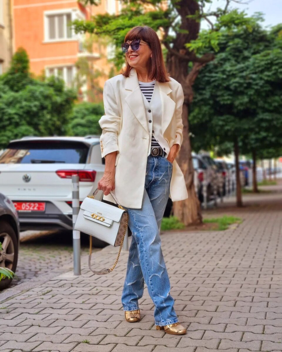 Что обо мне скажут люди? Именно так думаю люди, стоя перед яркими вещами на манекене. Креативность поможет усовершенствовать ваш гардероб, но важно не превратить его в наряд клоуна, оставаясь в рамках собственной гармонии. Зона комфорта важна даже в выборе одежды и обуви. Однако креативность позволяет оставаться на стиле, выглядеть моложе и интереснее. Экспериментировать можно и нужно, но как сделать это без лишних ляпов? Рассмотрим самые интересные варианты. Многослойность Выглядеть ярче обычного поможет многослойность образов. Что носите вы: футболки и джинсы, изредка накидывая сверху кардиган или пиджак. Добавьте дополнительный слой – жилет станет прекрасным решением. Поможет добавить объёмности драпировка пиджака, крупная бляшка ремня, закрытые туфли, объёмная сумочка. Можно добавить слои за счёт каскадной стрижки. Более лёгкий вариант для тёплой погоды – прозрачная накидка на плечи поверх выбранного наряда, будь то комбинезон или блузка с брюками, юбкой. Дополнительно слои добавля