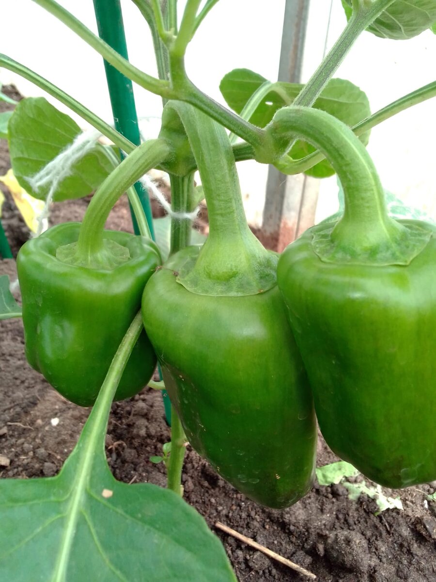 Перчики на двух кустах уже большие, остальные только начинают зацветать, но я и сеяла их попозже недели на три. Отвлеклась. После того, как все прополола и протяпала, стала подвязывать подросшие растения, тут мне активно помогал внук, умница мой, помощник.