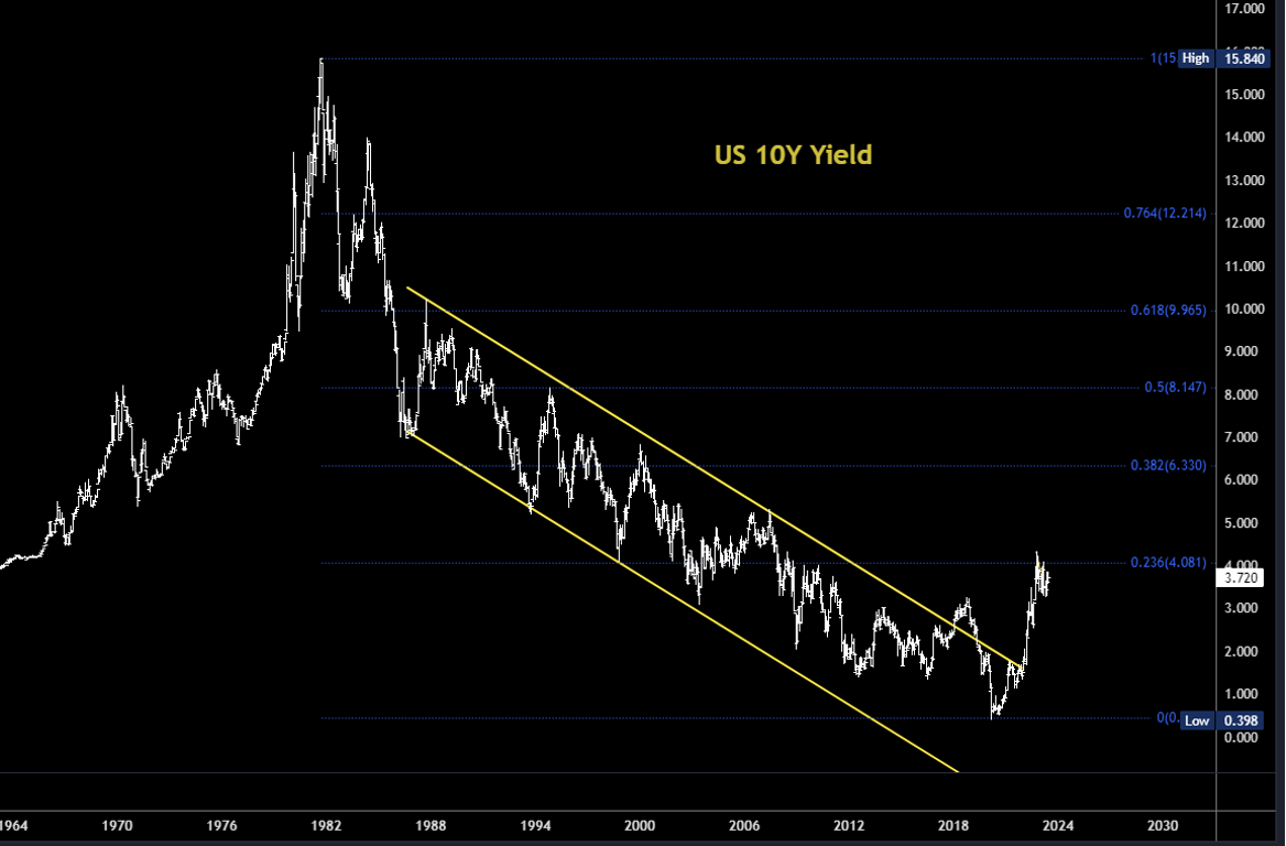 Несомненно, рост доходности после минимумов 2020 г. является одним из самых значительных изменений, произошедших с рынками и экономикой за очень долгое время. Нисходящий почти 40-летний тренд был сломан, и дни QE и ZIRP, наконец, остались позади (не уверен, что на долго): И это не только ситуация в США - краткосрочная доходность растёт по всему миру, например, на прошлой неделе кривая доходности Германии была максимально перевёрнутой почти за 31 год. Универсальным посланием основных центральных банков на прошедшем Экономическом форуме ЕЦБ было обязательство бороться с инфляцией с помощью ястребиной политики.