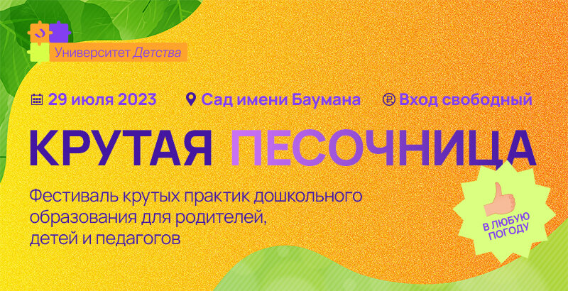 🌪 Крутая песочница – Фестиваль крутых практик дошкольного образования для родителей, детей и педагогов. Расскажем, что ждет вас и ваших детей.