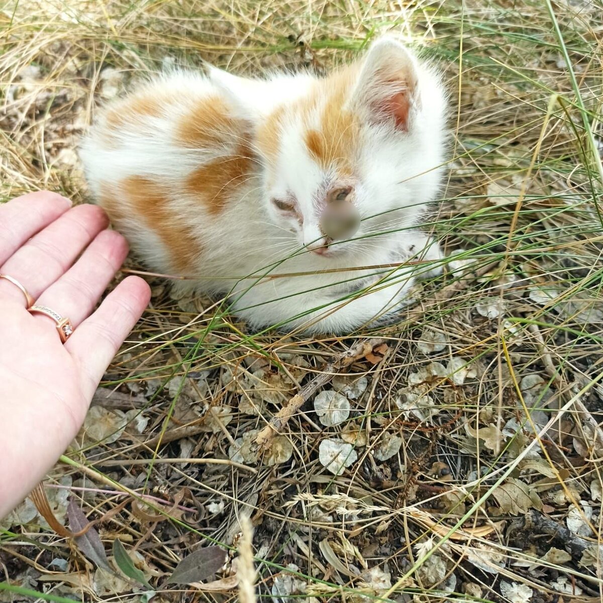 У нас очередная находка, в который раз рвущая душу и сердце на части от увиденного. Совсем крошечный, размером с ладошку, котёночек лежал один на траве. Его невесомое тельце кишело таким количеством блох, что не передать словами. А его глазки.... точнее, то, что от них осталось, просто в очередной раз повергло нас в шок от увиденного, хотя чего только нам не пришлось видеть за все наши волонтерские годы..