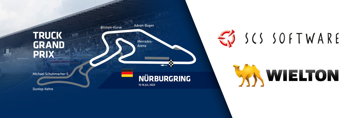 Каждый гонщик в своей карьере имеет несколько знаковых трасс, среди которых есть легендарные, такие как Нюрбургринг. Трасса Нюрбургринг протяженностью 3,629 километров, обладает 11 поворотами и стала домашней гоночной трассой Германии с 1927 года. Разработчики из SCS Software приглашают всех желающих примкнуть к их друзьями из Wielton у их стенда на готовящемся Гран-при FIA ETRC, который пройдет на Нюрбургринге 15 и 16 июля. Посетитлей ждёт день полон насыщенными событиями, наполненный гонками на грузовиках, но личная встреча с представителями двух компаний Wielton и SCS Software!