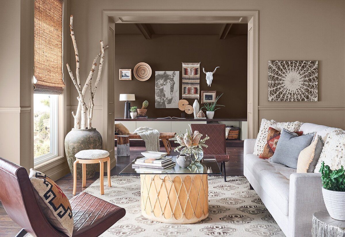 Коричневый считается нейтральным, с успехом применяется в разных стилях, комбинируется с большинством оттенков. В интерьере с преобладанием коричневого возникает ощущение защищенности и стабильности. Он отлично подходит в качестве базового для декора спальни, кухни, прихожей, гостиной.