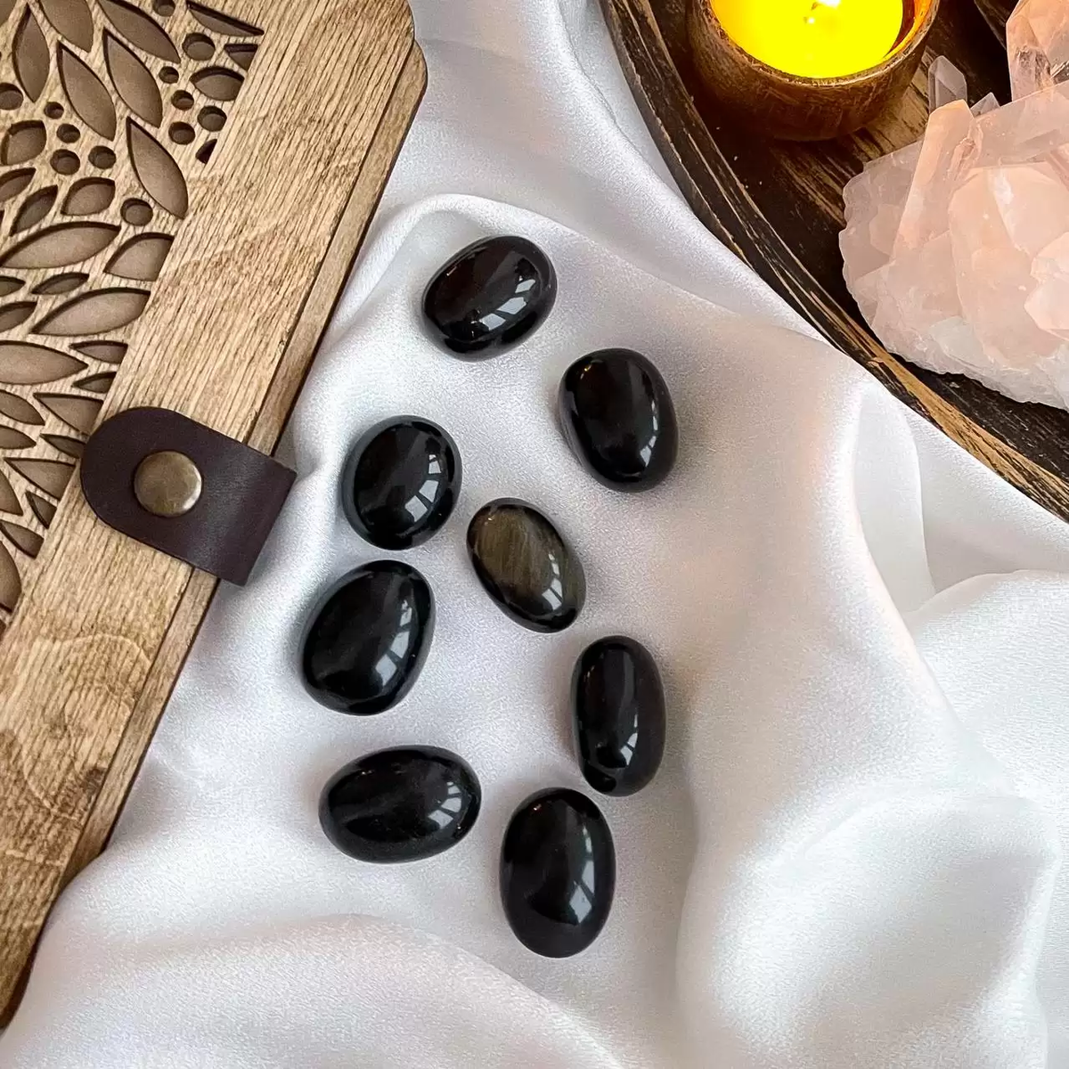 Обсидиан — это уникальный камень, который привлекает внимание своей интригующей черной окраской и магическими свойствами. Это вулканическая порода, образованная из лавы, которая быстро остывает при контакте с воздухом или водой. Это делает обсидиан одним из самых быстрообразующихся природных материалов. Загадочный минерал обладает аморфной структурой. Это значит, что он не имеет кристаллической решетки, как другие самоцветы. Вместо этого его молекулы настолько плотно упакованы, что формируют структуру стекла или черного камня. Происхождение обсидиана связано с вулканической активностью. Он может образовываться в разных частях мира, где происходят извержения вулканов. Некоторые из самых известных мест добычи обсидиана включают Мексику, Италию, Исландию, Японию и США. Особенностью обсидиана является его черный, непрозрачный цвет. Однако, в зависимости от присутствия различных примесей, он может иметь и другие оттенки, такие как серый, зеленый, красный или коричневый. Обсидиан также прояв