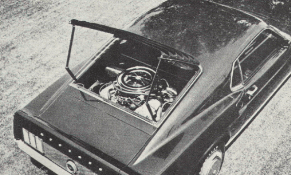 Одной из признанных проблем серийного Ford Mustang Boss 429 была его плохая развесовка. Это было результатом того, что между передними колесами (в шасси с достаточно короткой колесной базой) был втиснут большой, тяжелый двигатель V8. Поэтому внутри компании проводились различные эксперименты по решению этой проблемы, вот дин из них.