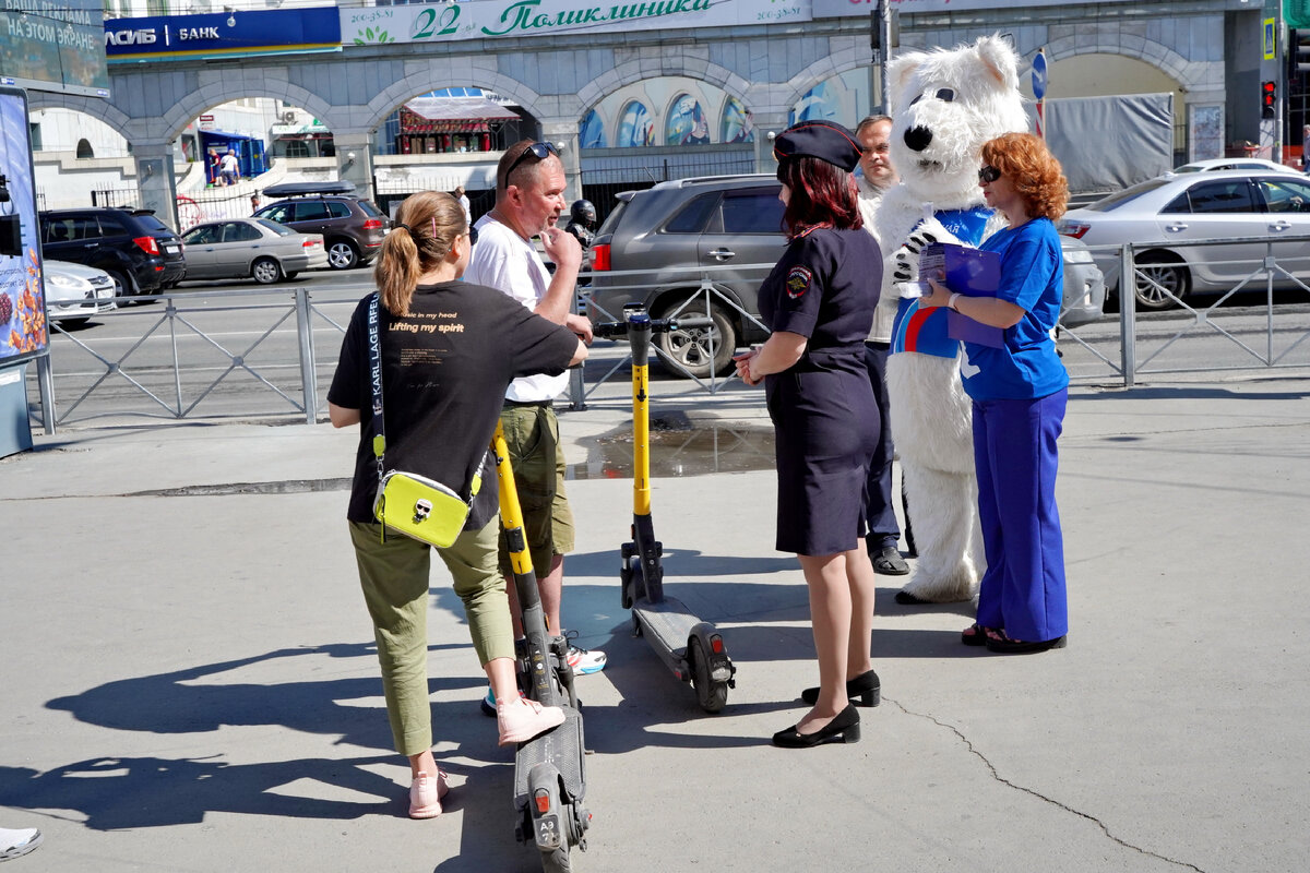 На площади им. Ленина волонтеры «Единой России» и представители ГИБДД провели совместный рейд по безопасности водителей сигвеев, гироскутеров и электросамокатов. Волонтёры вручили разработанные памятки и светоотражающие браслеты. Инспекторы рассказали водителям о новых правилах дорожного движения, вступивших в силу с 1 марта 2023 года. В ПДД введён новый термин «Средства индивидуальной мобильности» (СИМ – сигвеи, гироскутеры и электросамокаты). До изменений правил их водителей расценивали как пешеходов. Теперь они полноценные участники дорожного движения с прилагающимися обязанностями. Например, максимальная скорость не выше 25 км/час, ездить нужно по тротуарам и отдавать приоритет пешеходам, на «зебре» спешиваться, с 14 лет можно ехать в крайнем правом ряду, но только по дорогам со скоростным лимитом 60 км/час. Акция прошла в рамках партийного проекта «Безопасные дороги».