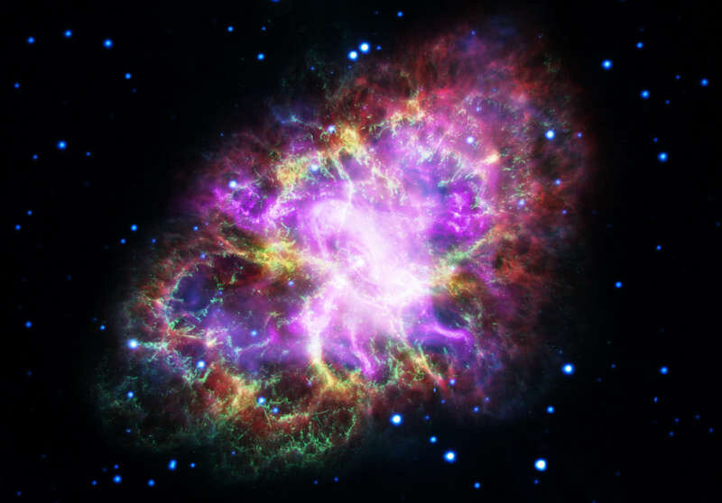 Туманность Краба - это одна из самых известных и ярких туманностей в нашей Галактике. Вот несколько фактов и интересных характеристик о ней: 1. Название "Туманность Краба" произошло от того, что через телескоп эта туманность выглядит как яркий светящийся объект с многочисленными выпотрошенными фрагментами похожими на виделка краба. 2. Туманность Краба находится на расстоянии примерно 6 500 световых лет от Земли в созвездии Телец. 3. В центре Туманности Краба находится на вид так называемая "звезда-зомби", остаток коллапсировавшей звезды, которая взорвалась в результате сверхновой. Это нейтронная звезда, известная как пульсар, которая вращается быстрее близкой к близости к объединению двух черным дырам или нейтронных звезд. 4. Свет, который мы видим сейчас от Туманности Краба, достиг нашей планеты около 1000 лет назад, что является временем сверхнового взрыва. 5. Туманность Краба - одна из самых изученных туманностей в нашей Галактике, и она предоставляет огромное количество инфор