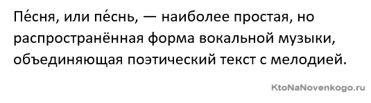 Песня – это живая история народной души, явленная в слове и переложенная на музыку. В фольклоре песня была и остаётся самой распространённой формой устного поэтического творчества. Она сопутствует бытовым обрядам и сакральным ритуалам, выполняет терапевтические, защитные, охранные функции, служит для передачи знаний и представлений о мире от поколения к поколению. Песня — это ... Песня представляет собой синтез поэзии и музыки. В рамках жанра эти две составляющие существуют на равных правах. Мелодия и текст подчинены друг другу, при этом бывает трудно определить, какое из двух начал первично. Уникальность песни в том, что словесная и музыкальная стихии органично слиты, что отражает историческую природу жанра. Когда-то песни были единственной и главнейшей формой коллективного творчества. Они не отличались изысканной эстетикой: часто могли включать в себя лишь несколько повторяющихся предложений или фраз. Важным осознавалось ритмическое повторение определённых словесных формул, которые с