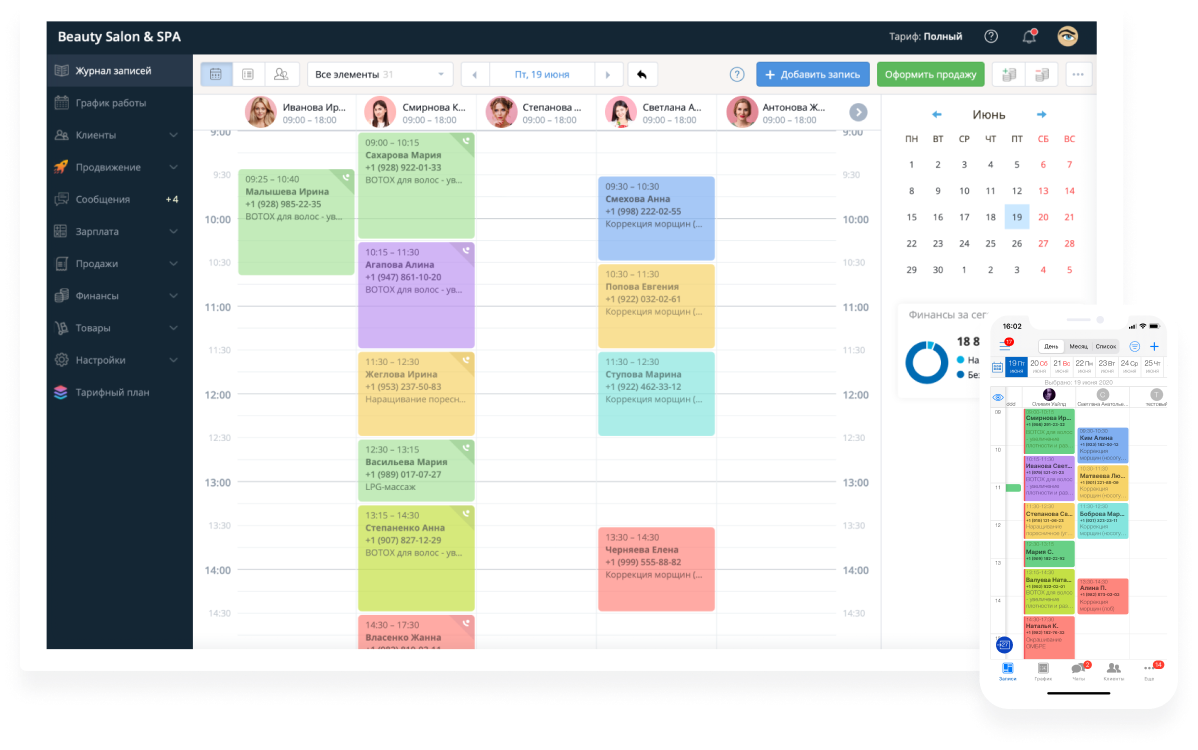 - Управление календарем и расписанием: данная CRM-система позволяет салонам управлять расписанием работы сотрудников, бронированием и отменой записей, что обеспечивает эффективное использование времени.