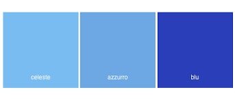 В итальянском, как и в русском,лексически достаточно разработан спектр цветов, относящийся к оттенкам синего и голубого.