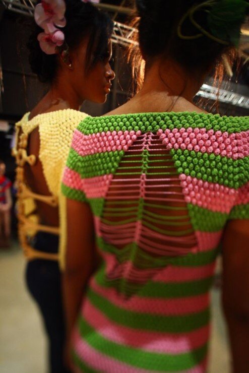 Добрый день, дорогие подписчики и читатели канала! Мира, здоровья и ровных петелек вам! Мы с Хомяком любим бездумно бродить по вязальному интернету и июнь этого года не был исключением. И, как обычно, в своих скитаниях по Сети мы обнаружили несколько авангардных, порой слегка безумных, ансамблей, и некоторое количество интересных нам моделей и идей, которыми решили поделиться - пусть они не всегда в модных трендах, но нам нравится! И никаких картинок а-ля Филипп Киркоров.... Хотя нам известен стиль китч, когда откровенная безвкусица становится принципом выбора, и бьющая в глаза несочетаемость цветов и линий только приветствуется, однако мы не являемся его откровенными поклонниками. Сдержанность и еще раз сдержанность - хотя погодите, что это там нарушает классические каноны за углом? Открытая спинка. Helen Rodel, огненная ритмичная самба карнавала в Рио! Пожалуй, даже капоэйра, поражает круче грома с молнией! Особенно когда надеешься, что тебе все же можно - а потом понимаешь, что верх