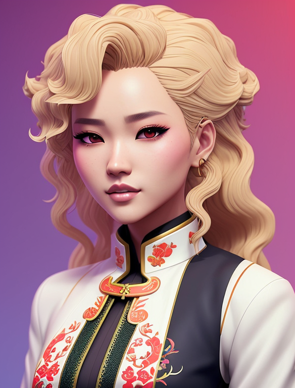 Продолжаем тему промта, включающего в себя: modelstyle shoot of woman wearing a japanese cloth, mixed race woman, Luminous curly hair, stylish, lens rich colors, hyper realistic texture, unreal engine, trending on artstation... По сути дальше можно менять "japanese" на любой другой вариант, допустим "Chinese" и дополнять образ разными цветами волос и глаз. Это все еще та же девушка из прошлой статьи (она здесь), но все же менее красивой от небольших изменений ничуть не стала. В данной недостатье рассмотрим именно блондинок китайского происхождения 🧡 Ну и еще немножко: Такие красивые одежды на них, загляденье 😻 Еще подобные недостатьи здесь: Увидимся 💓