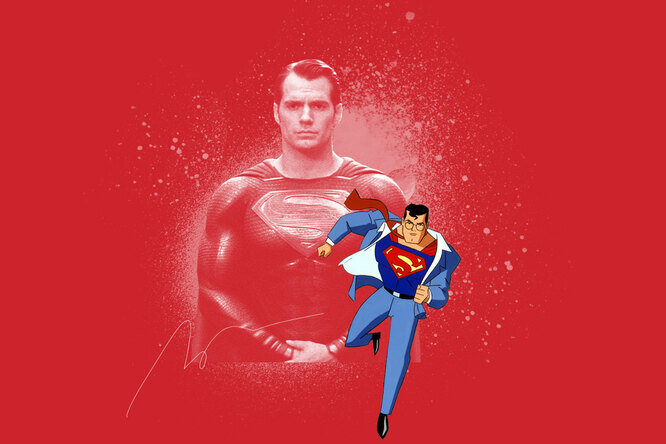 Поскольку персонаж появился из комиксов, то начнем с той кинематографической формы, которая ближе всего к стилистике рисованных картинок, то есть с мультфильмов. Здесь, как, впрочем, и далее, невозможно избежать упоминаний главного конкурента Супермена в иерархии DC Comics — более мрачного и приземленного Бэтмена. Первый достойный анимационный проект — мультсериал «Супермен» (1996–2000) — стал своего рода продолжением знаменитого мультсериала «Бэтмен», стартовавшего в 1992-м. Кларка Кента озвучивал Тим Дейли, шоу продержалось три сезона и сильно уступало приключениям Брюса Уэйна, но это не помешало ему стать хитом. Кроме того, именно с этого сериала началась любовь к Супермену у российский детей из 2000-х, когда герой наконец добрался до наших телевизоров.