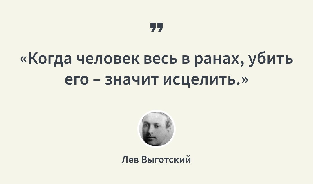 Год назад, когда я искала информацию о великом советском психологе Льве Семеновиче Выготском, очередной раз убедилась, как важно проверять информацию и обращаться к первоисточникам. Все мы знаем множество "фраз" несравненной Фаины Раневской, которые она не говорила. Присвоенные себе чужие статьи, стихи и т.д. И тогда я наткнулась на одном сайте на такую цитату якобы Выготского: Когда человек весь в ранах, убить его - значит исцелить". Очень удивилась такой кровожадности Льва Семёновича. Решила пойти посмотреть контекст сказанного в первоисточнике "Психология искусства" Оказалось, что фраза действительно есть, но: Во- первых, она взята в кавычки и принадлежит Геббелю, а не Выготскому. Во- вторых, Выготский оспаривает этот тезис и пишет свое мнение. Почувствуйте, как говорится, разницу: А ведь прочтут такую цитату люди и побегут рассказывать о жестокости советских психологов. А вот это вообще нонсенс: Крылова приписать Выготскому! Ревизионисты скажут, что Выготский Крылов
