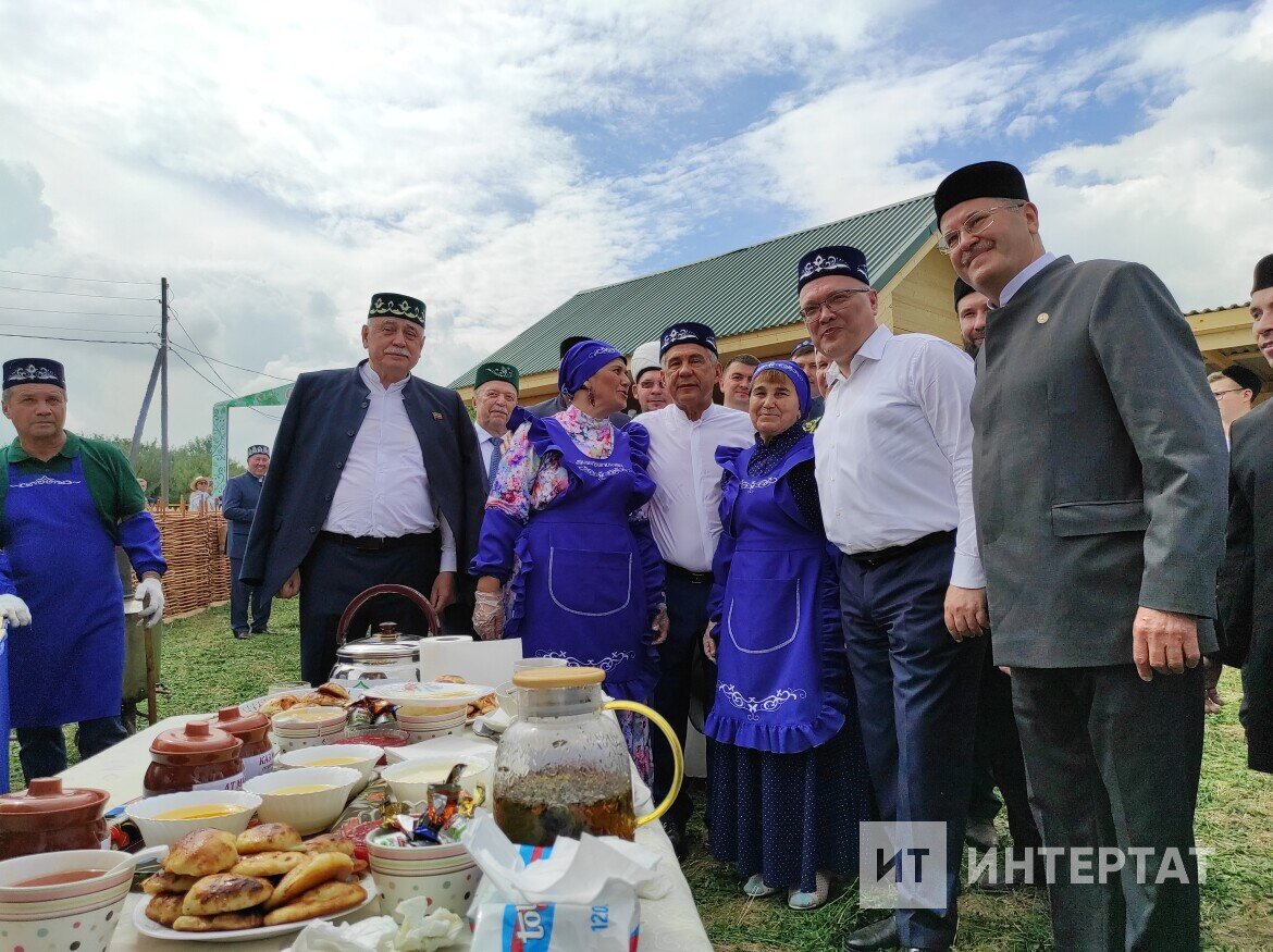 Ниһаять, көтеп алынган кунаклар да килеп җитте. Татарстан Республикасы Рәисе Рөстәм Миңнехановны Киров өлкәсе губернаторы Александр Соколов, өлкә җитәкчеләре, Милли Шура рәисе Васил Шәйхразыев, Бөтендөнья татар конгрессы башкарма комитеты җитәкчесе Данис Шакиров, Балтач районы башкарма комитеты җитәкчесе урынбасары Илһам Гайнетдинов һ.б. каршы алды.