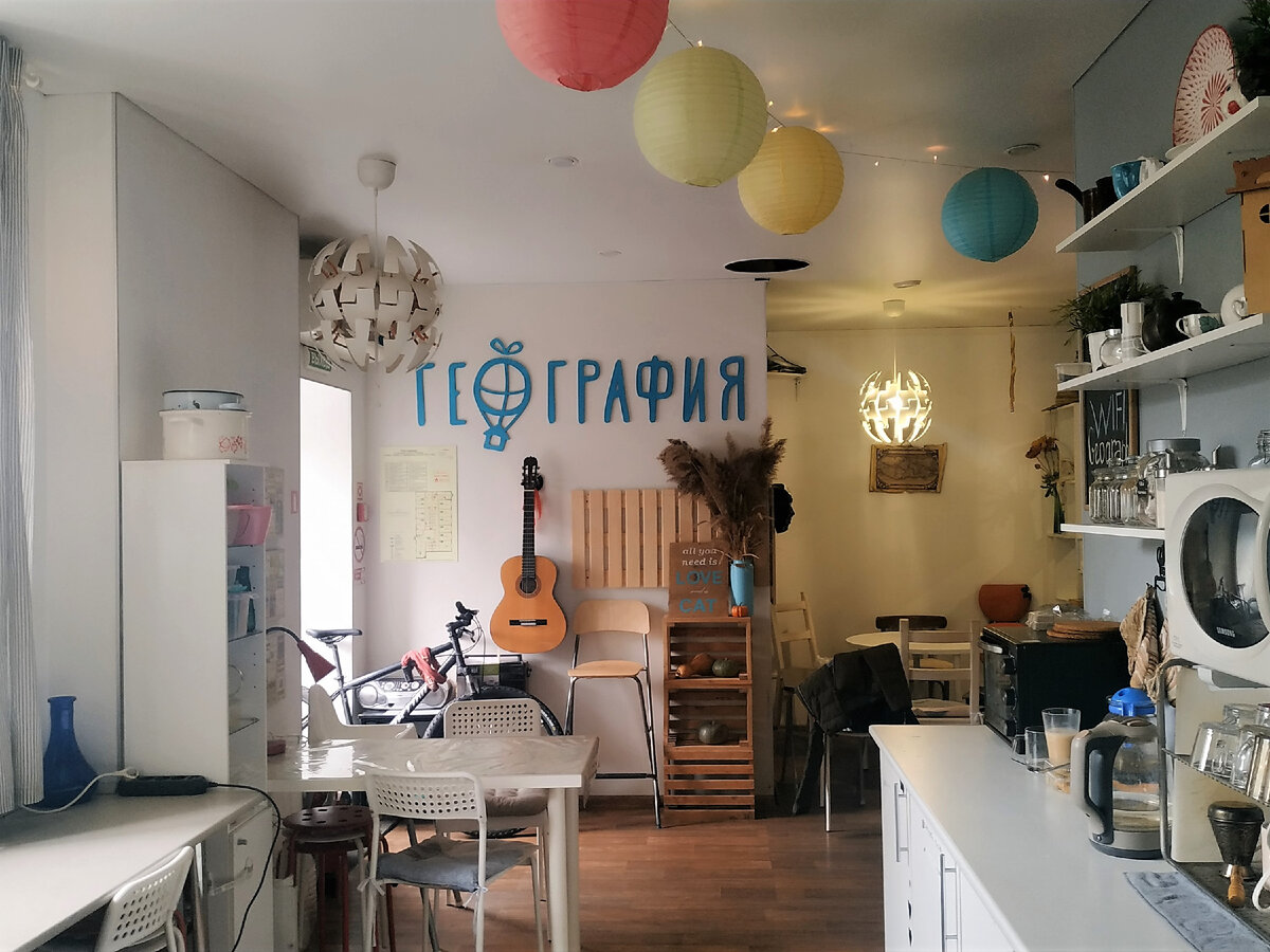 Хостел «География» стоит дороже, чем «Кот на крыше», но он и получше: нет стиралки на кухне, есть кран с питьевой водой, бесплатные тапочки, бесплатные ячейки с ключом, есть отдельная багажная комната, комнаты просторнее и в них больше мебели, стены толще – я не слышала соседей (либо они не шумели). До Бауманки 10 минут пешком. Из минусов, если попадётся комната, выходящая на улицу, то ночью тяжело будет заснуть. Единственное, что могу посоветовать – при бронировании просить комнату с окнами во двор.