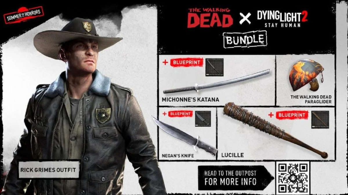 Кстати, о скинах: в скором времени в Dying Light 2 появится набор с предметами из сериала Walking Dead: бейсбольная бита (Люсиль) и нож Нигана, катана Мишонн и арбалет Дэрила. А также будет добавлен костюм Рика Граймса.