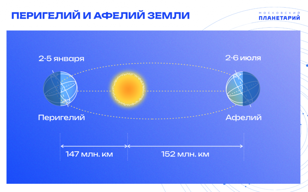 Существует ошибочное представление, что смена времен года зависит от расстояния до Солнца, т.е. чем дальше от Солнца Земля – тем на ней холоднее и должна быть зима. Но у нас июль и лето в самом разгаре, хотя Земля проходит самую удаленную точку своей орбиты и это никак не влияет на смену времен года на нашей родной планете!
