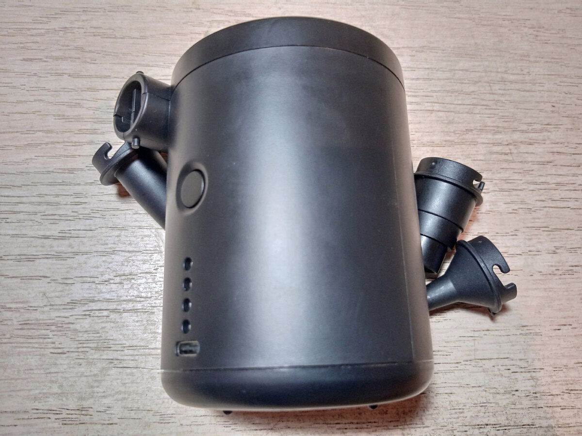 Все в этом мешочке. Штука компактная и не особо тяжёлая. Что имеет значение! Кто залезает дальше придомовой лужи, меня поймут. Там каждый грамм на счету (хоть выбрасывай!). Забыл сказать, что дуделка аккумуляторная и очень бюджетная. Емкость встроенного аккума нигде не указана, но заявлено 30 минут непрерывного дудения! По 220 литров в минуту! А это очень много, скажу я вам...