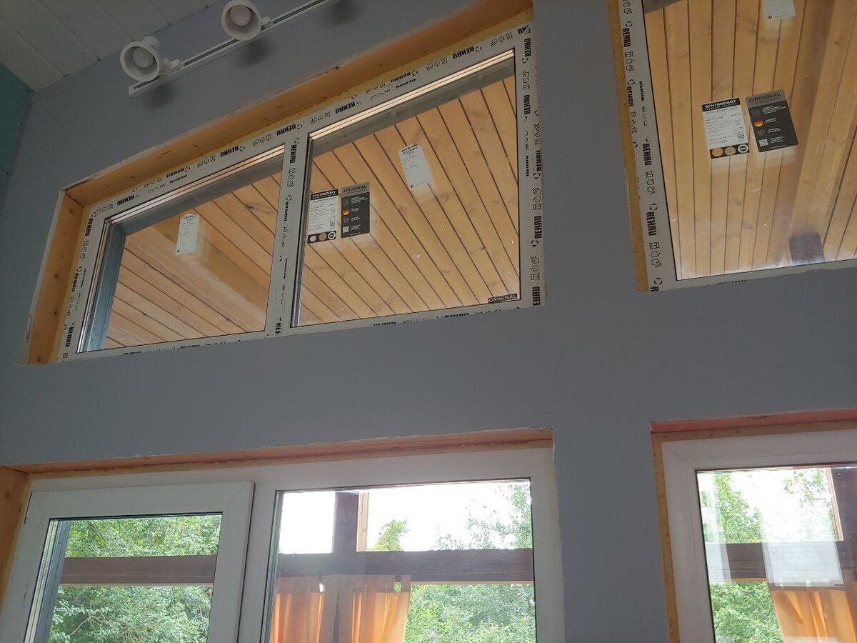 Внутри дома все еще не сделаны откосы на окнах. Это создает во всем доме ощущение незаконченного ремонта. Почему не сделали? Было несколько мыслей, как сделать необычные откосы. Но на них не было ни времени, ни средств. Окон много и возни с ними порядочно.