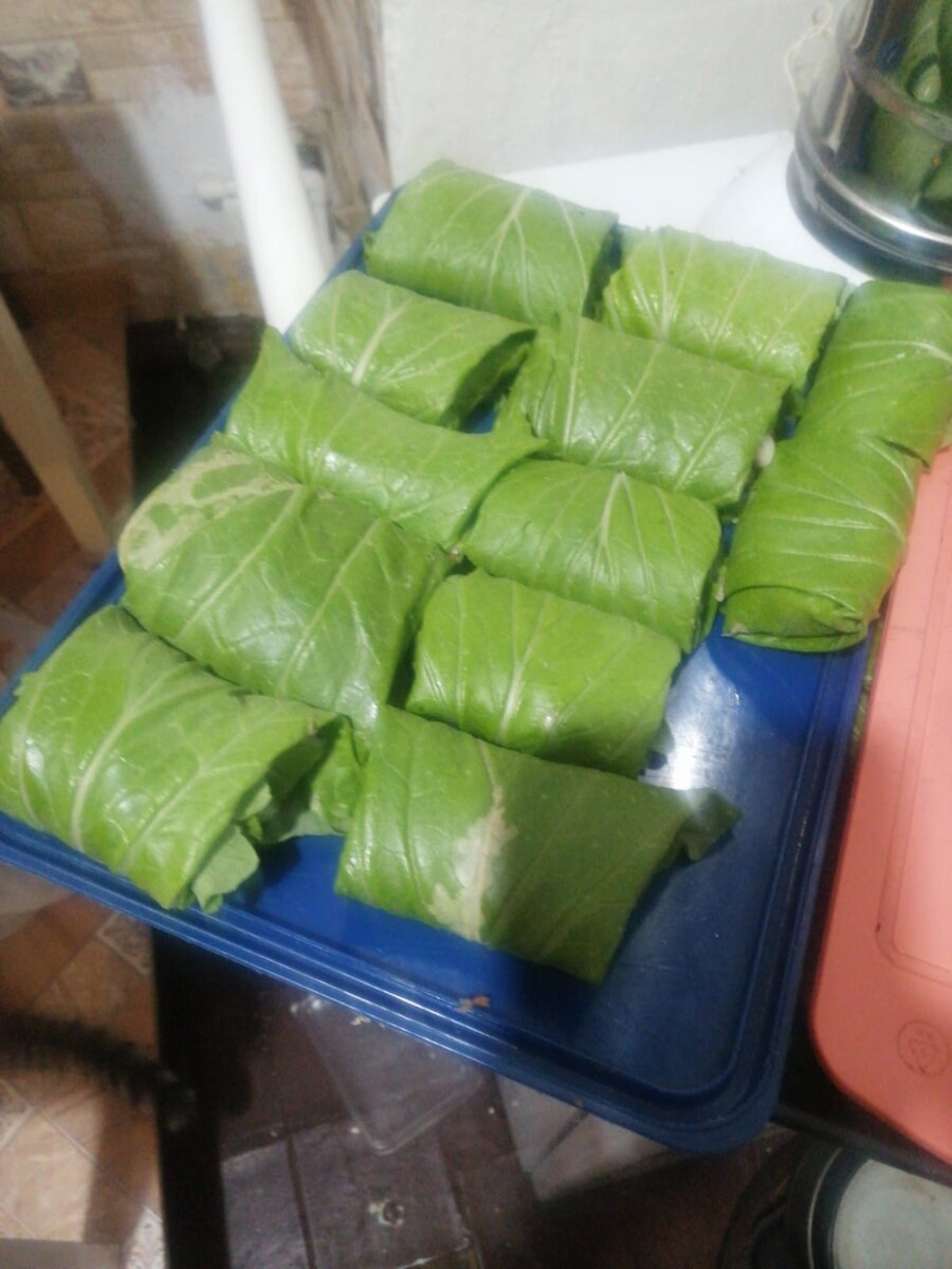 Всем привет. Решила приготовить голубцы из пекинской капусты Сначала отрезаю низ у кочана пекинской капусты. Разбираю капусту на листья. Привариваю листья в кипятке 10-20 секунд, чтоб они стали мягкими и было легко завернуть в них начинку. Выкладываю на блюдо, даю остыть и стечь. На каждый листик кладу по 1,5 – 2 столовых ложки начинку (фарш, смешанный с вымоченным рисом, нарезанным луком и зеленью+соль+перец). Края подгибаю к центру, чтоб они прикрыли начинку.ну как и все голубцы в принципе Верхушку листа переворачиваю, чтобы прикрыть края и начинаю скатывать. Аккуратно скатываю голубец к низу листа. Так я кручу все листики капусты… Выкладываю голубцы на раскаленную сковороду. Обжариваю с двух сторон. Перекладываю в кастрюлю, в которой буду тушить. Морковь натираю, лук мелко режу. На растительном масле прижариваю овощи, добавляю томатный сок и немного тушу, солю, перчу. Получившейся поджаркой заливаю голубцы. Добавляю бульон. Приятного аппетита!!