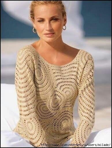 Всех приветствую. Чего только не придумают мастерицы вязальщицы (и вязальщики). Хочу сказать, что уже много раз видела в интернете на различных ресурсах вяжущих мужчин. Именно вяжущих одежду, а не рыболовные сети))). Помню, давно когда-то я знала одну девушку врача, так у неё вязал муж, и ещё как вязал! А она не умела))). Ну а сегодня поделюсь с вами подборкой одежды из кругов. В принципе, это достаточно несложно, судя по схемам. Когда-то начинала юбку таким рисунком, а потом распустила. Итак, смотрим и вяжем. 1. Джемперы кругами. Здесь скорее плотные шестиугольники из столбиков без накида. Каждый следующий прикрепляется к предыдущим по ходу вязания в последнем ряду: В этих двух моделях прям безотрывное вязание кружочков в виде лент. 2. Платья из кругов и полукругов. 3. Немного схем для полупрозрачных кругов и полукругов.