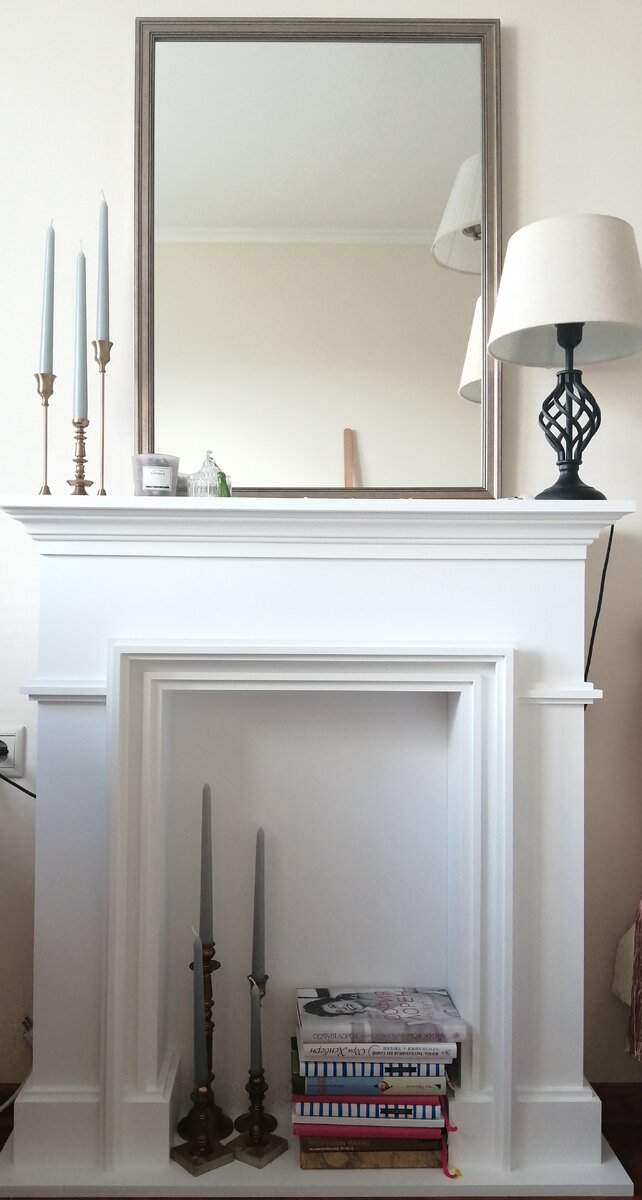 Бывало так, что хотелось изменений интерьера без ремонтных работ, сверления и тому подобного? Декораторские приемы позволяют сделать это достаточно легко. Фальшкамины - великолепный пример такого решения. Они не только радуют глаз, но и могут функционально заменить консольный столик, поскольку есть модели досточно узких порталов - 12 см в узкой части и 20 см в самой широкой. Однако возьмите на заметку: если у Вас уже есть плинтус, то нужно заказывать выступ консоли с обратной стороны изделия под размер плинтуса. В противном случае будет расстояние между стеной и предметом. Будьте осторожны с краской: уточните у изготовителя свойства. Порталы есть и в крупных мебельных магазинах. Однако они чаще всего крупнее. Сегодня на рынке появились порталы из гипса. Их стоимость в два раза меньше (до десяти тысяч) фальшкаминов из ДСП, а дизайн более изящный. Традиционно над камином вешают зеркало или картину, однако это не аксиома. Можно поставить на каминную полку, прислонив к стене, любимое фото