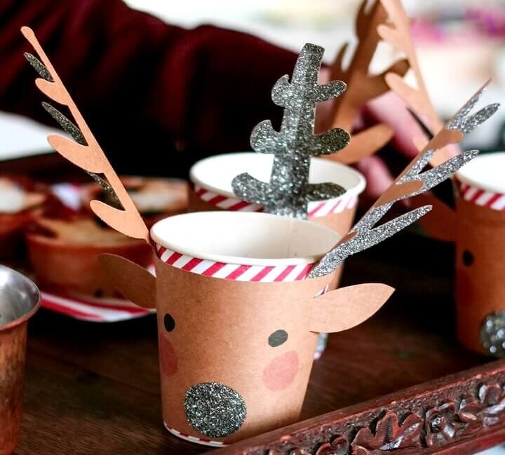 Обычные одноразовые стаканчики могут стать отличной основой для поделок на Новый год. Подойдут любые: большие или маленькие, пластиковые или картонные, прозрачные или цветные – пускайте в работу все, что есть в доме. Дополнительно вам понадобится только клей и стандартный новогодний декор. Подборка из лучших идей поделок из стаканчиков к приближающемуся празднику. Многие из них подойдут для творчества вместе с детьми, а также для конкурса в школу или детский сад. Просмотрите всю подборку и выбирайте самые интересные варианты. Олень Простая поделка из стаканчика к Новому году подойдет для участия в конкурсе в детском саду или начальной школе. А еще она может стать отличным украшением праздничного стола или упаковкой для подарка. Нам понадобится: Измерьте обхват стаканчика в самом широком месте и его высоту. Если он красивый, сверху можно оставить небольшой край. Вырежьте прямоугольник из крафтовой бумаги, оберните стакан и поставьте отметки, где будут уши и мордочка оленя. Сделайте надр