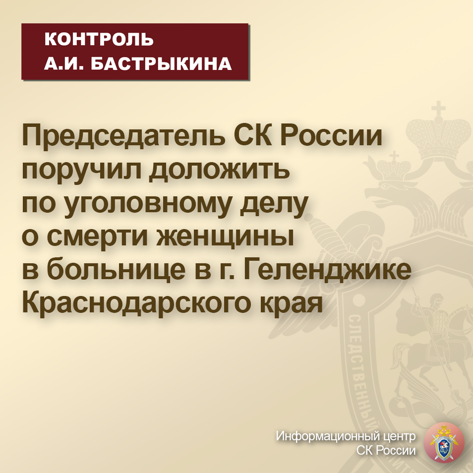 К главе СК России А.И. Бастрыкину в Приемную «ВКонтакте» обратился житель Краснодарского края. Он выразил несогласие с ходом установления обстоятельств смерти его 34-летней дочери в больнице в городе Геленджике в 2021 году. Заявитель полагает, что пациентка скончалась в результате некачественного оказания ей медицинской помощи, однако до настоящего времени к уголовной ответственности никто не привлечен.