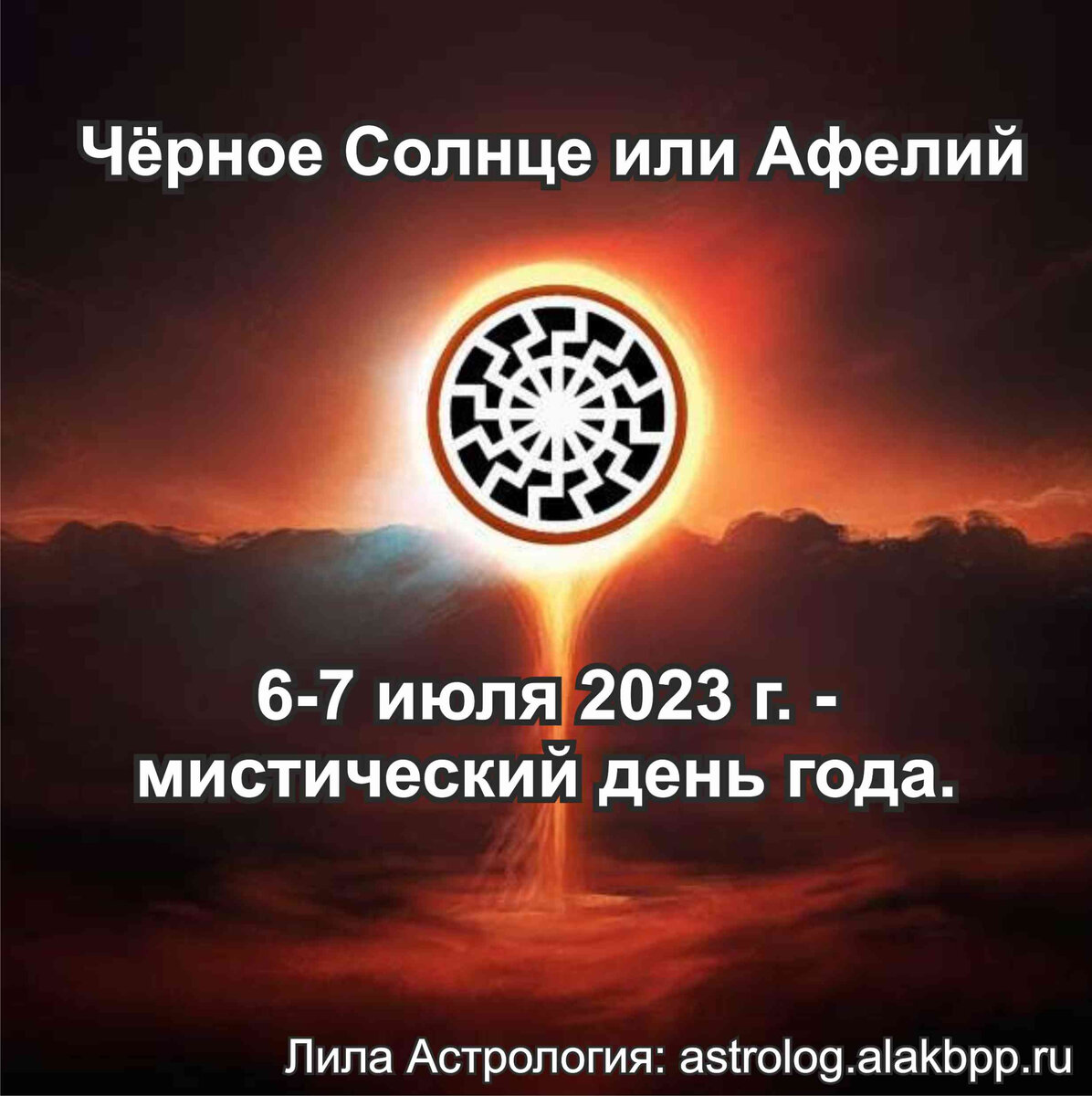 Черное Солнце или Афелий 6-7 июля 2023 г. - мистический день года. В период 1-7 июля Солнце ежегодно находится в самой дальней точке от Земли, в положении так называемого “Черного Солнца” или в Афелии. В 2023 году это произойдет 6 июля в 23:06 МСК, а точнее с 6 на 7 июля в разных часовых поясах, и будет совпадать с Днем Ивана Купалы, что увеличит энергосилу этих дней во много раз. В день Черного Солнца (Афелия) Земля получает наименьшее количество солнечного света и энергии. Каждый год Афелий выпадает на разные дни указанного периода. Издревле дни Черного Солнца считались мистическими и использовались в магии. Но не все так просто... Это дни великих соблазнов, активного обострения в человеке всего темного, связанного с отсутствием любви, деструктивом, ложью, лицемерием, обманами. Это не разрушение в прямом смысле этого слова. Но энергия «Черного Солнца» поднимает в человеке все его негативные проявления, вполне осознанные, подталкивая его сделать выбор между светлым и темным началом.