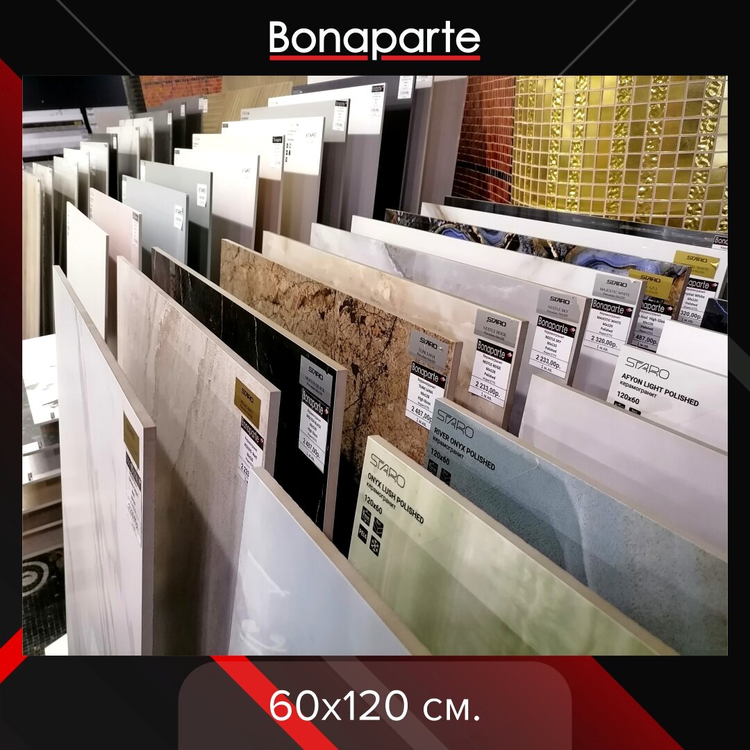 И снова здравствуйте. Сегодня салон «Бонапарт» следуют прописной истине «лучше один раз увидеть, чем…». А потому – несколько вариаций на тему «а у нас в салоне есть - …». Так и хочется добавить «практически всё!»)) Для сомневающихся же – фото из салона в различных ракурсах. Итак, в салоне «Бонапарт»: - Керамогранит. От мелкоформатного до крупно-. - Плитка. Тоже различных форматов. - Мозаика. Стеклянная, каменная, комбинированная. Торговые марки … Нет смысла перечислять. Все ведущие, начиная с собственного бренда. Как отечественные, так и лучшие зарубежные.Обновление ассортимента – еженедельное. Классика, модерн, пэчворк и т.д. Мы только начали о себе рассказывать, а буквы уже практически закончились. Что ж, ждём Вас в нашем салоне! А на самые актуальные вопросы мы всегда готовы ответить по телефону +7(383) 210-54-54. Наш сайт вonaparte-nsk.ru. ! С расчётами поможем. ! Доставку организуем. ! В субботу работаем. ! Дизайнерам – особые условия. ! Адрес: г.Новосибирск, ул. Никитина, 20 (