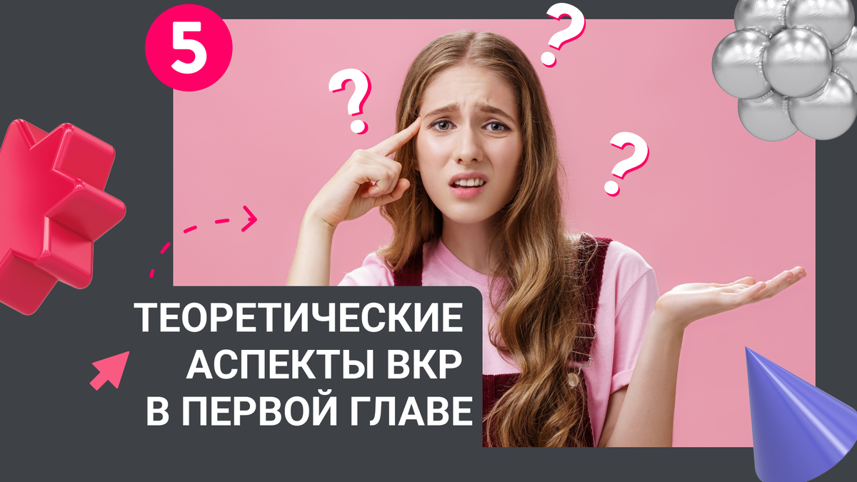 В данной статье мы рассмотрим некоторые ключевые аспекты, которые студент должен осветить в первой главе ВКР. Статья подготовлена командой Work5, мы помогаем с написанием любых студенческих работ. Навигация по статье Что такое теоретическая часть ВКР Теоретическая часть ВКР – это первая глава ВКР, которая обычно посвящена теоретическим аспектам выбранной темы и является основой для всего исследования. В этой части работы студент должен привести основу теории, на которой будет базироваться его исследование. В ней исследователь представляет теоретические основы, формулирует исследуемую проблему, выбирает методы и определяет ожидаемые результаты. Теоретические аспекты ВКР в первой главе Содержание теоретической части может быть разным и во многом зависит не только от темы ВКР, но и от предмета, по которому она пишется. Приведем универсальный вариант структуры первой главы: В конце теоретической части обязательно приводится общий вывод, который должен отражать важность выбранной темы и об