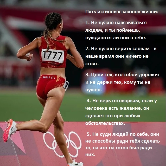 🏆 🏃♂🏃♀ Пять истинных законов жизни ❗❗❗ ❓ Друзья, Коллеги, а Вы также считаете? 🥇 Всем здоровья, спорта, побед! 🙏 Искренне от души, с уважением и наилучшими пожеланиями! 🤝🏻😁👍🏻
