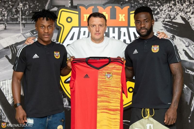 Сегодня тульский "Арсенал" подтвердил переход в команду нигерийцев Ндука и Окоронкво, о переходе которых мы сообщали ранее. Игроки права на которых принадлежат футбольному клубу "Краснодар" перешли в тульскую команду на правах аренды. Джонатан Окоронкво- форвард, 19 лет, делал первые шаги в футболе в академии «Diamond Star Calabar», позже играл за нигерийский «Hope of Glory». В 2019 году перебрался в Россию, где его первой командой стала "Виста" из Геленджика. После успел поиграть в Болгарии за местный "Ботев", откуда он уже отправился в стан "быков". Выступает на позиции центрального нападающего. Давид Ндука- полузащитник, 19 лет, проделал похожий путь, его первая команда нигерийский "Сollins Edwin". От туда он перебрался в "Висту", затем в Болгарию. Перебрался в "Краснодар" из болгарского "Ботева". В сезоне 2022/23 Первой лиги играл за дубль "быков" и сыграл в составе главной команды против "Зенита" (2:2). Может закрывать позиции центрального и опорного полузащитника. Ранее "Арсенал"