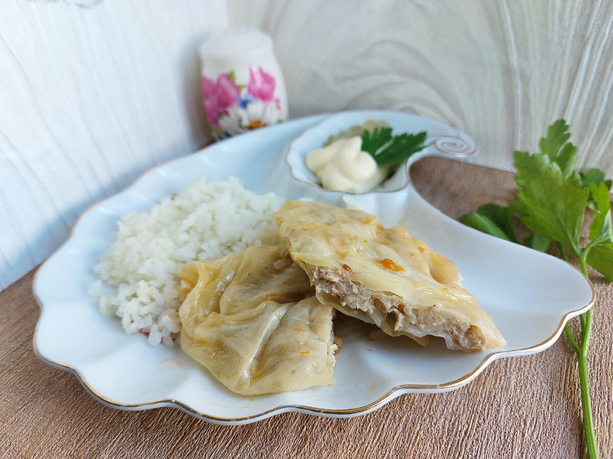Чебуреко - голубцы или ленивые голубцы 🙂 Почему чебуреко - голубцы? Все просто, форма похожа 😊 Почему ленивые? Потому что на чебуреки похожи 😁 За идею взяла рецепт одной девушки на канал которой я подписана. Только немного его изменила, что бы внести авторскую нотку 🌝 да простит меня автор этого кулинарного шедевра 🙂 И так нам понадобится: - Средний велочек капусты, у меня молодая была. - 400 гр. фарша ( курица или свинина ) - 300 гр. отварного риса - 1 луковица - 3 ст. л. заправки для соусов ( рецепт заправки тут По рецепту автора вместо заправки можно приготовить заправку из моркови, лука и вроде бы томатов , точно уж и не помню) 5 ст. л. подсолнечное масла для жарки. Соль перец по вкусу 🍴ПРИГОТОВЛЕНИЕ: Берём вилок капусты и вырезаем кочерыжку. Наливаем в глубокую кастрюлю воды, солим и отправляем туда вилок ккапусты повариться минут 15, что бы листья стали ммягкими. Далее вилок остужаем и снимаем верхние листья. ВНИМАНИЕ , не торопитесь выбрасывать оставшуюся ча