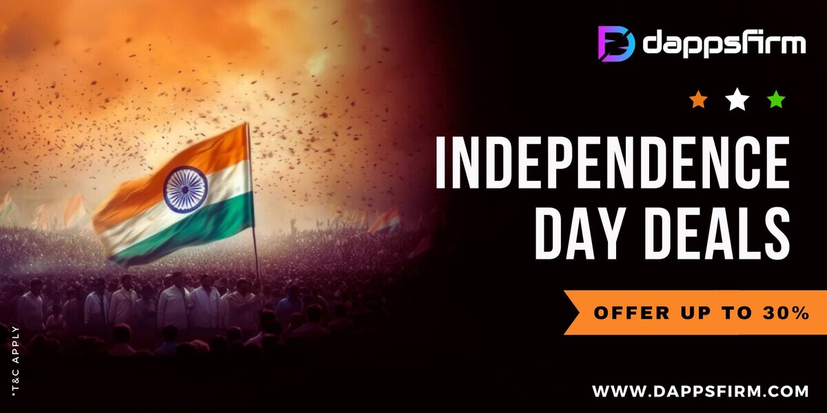 As Independence Day approaches, DappsFirm is delighted to offer unbelievable discounts of 30% off on all its Blockchain-based gaming products. (Terms and conditions apply.) Embark on an amazing Blockchain journey with us and seize our discounted services to become a leading business venture in no time. Don't miss the opportunity to collaborate with our talented team of professionals and avail of our services by August 15th, 2023. DappsFirm, a pioneer in Blockchain games development, has worked on nearly 150+ gaming projects and catered to clients worldwide. Our reliable products cover various streams such as Web3.0, Metaverse, Gambling games, and more. In the future, we aim to integrate artificial intelligence technology into our work to create extraordinary experiences. As we celebrate India's 76th Independence Day, we take pride in announcing exclusive offers for all our gaming services. Are you eagerly awaiting details of our sales offer on our astounding services and products? Disc