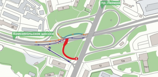 Движение автобусных маршрутов А-7, Т-13, Т-86, Т-94 будет организовано в направлении Комсомольской площади — по транспортной развязке Комсомольского шоссе и проспекта Ленина (первый съезд) с разворотом на пересечении с Шлиссельбургской улицей и Комсомольскому шоссе. В направлении улицы Июльских дней маршрут автобусов не изменится.