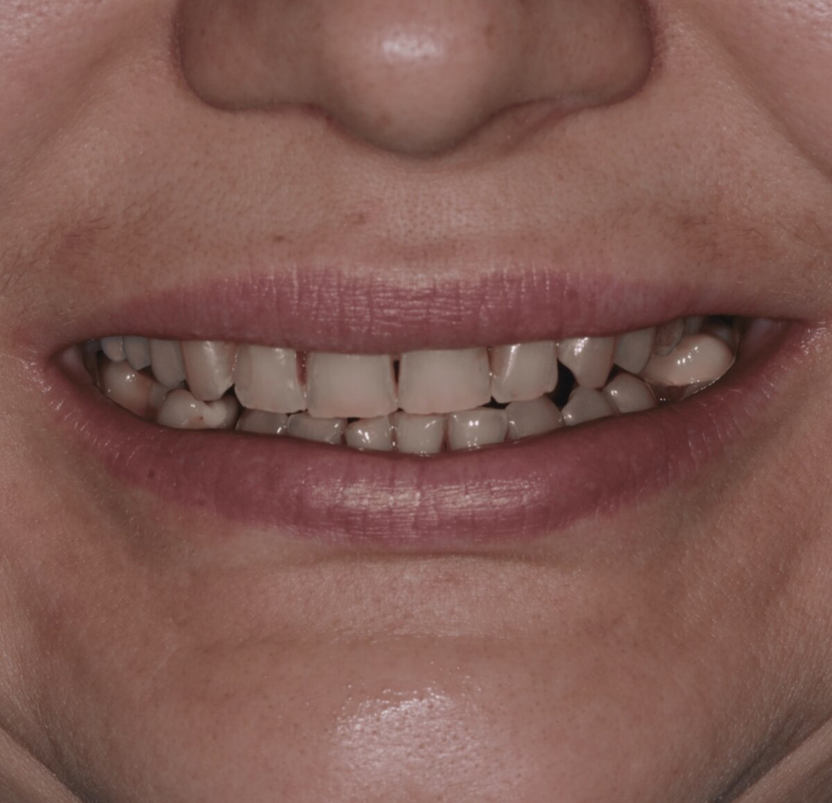 Пациенты часто не знают что выбрать. Виниры или отбеливание. Все зависит от того, чего ожидает пациент от лечения. Если он хочет поменять цвет зубов на 4-5 тонов, изменить форму и размер зубов, то это уже не про отбеливание. Если у него существуют пигментированные контакты и объемные реставрации, то это тоже не про отбеливание. Расскажем более подробно в нашем кейсе. Пациентка обратилась в клинику с жалобой на отсутствие зубов и эстетические проблемы. Ей не нравилась ее улыбка, но в целом состояние зубов было неплохое. На верхней челюсти были сохранены все зубы, не было больших пломб и реставраций. Пациентка уже прошла несколько консультаций в других клиниках, где ей рекомендовали то отбеливание, то виниры. Обратившись к нам на консультацию она уже находилась в небольшом замешательстве, что же ей в итоге делать. То факт, что на нижней челюсти отсутствовали зубы и их необходимо было восстанавливать, у нее сомнений не возникало. Но что делать с эстетикой улыбки, которая ее беспокоила, т