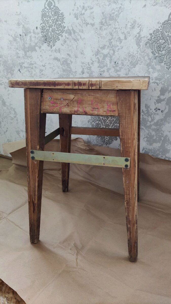 На фото табурет, возраст которого около 50 лет. Сегодня в прямом эфире местного телеканала за 3 часа вернула его к жизни, и сделала более уникальным за счёт нанесения черных полос по некоторым поверхностям изделия
