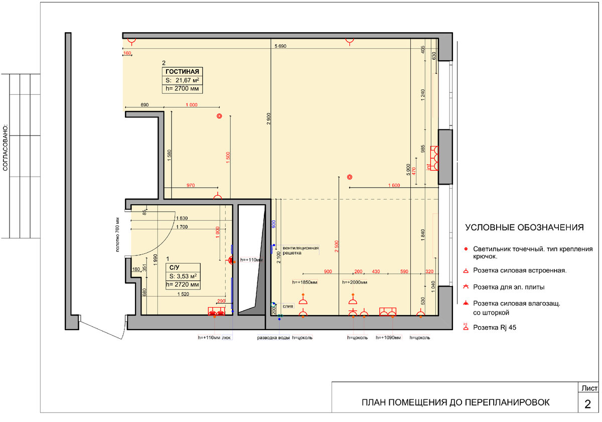 Ко мне обратилась молодая пара ребят за проектом кухни-гостиной в квартире. Квартира шла с отделкой от застройщика и заказчикам хотелось сделать классно, но с минимальными переделками. Сложность заключалось в том, что большая часть встроенной техники уже была куплена. В частности, встроенный холодильник, шириной 750 мм, полноразмерные встроенные посудомойка, духовка, варочная панель и СВЧ. А дальше, со слов заказчицы: "купить-то я купила, а когда мы начали планировать кухню, то поняли, что ничего не влезает. " Покупать технику без планировки всегда рисковое решение. Что-то придется сдавать, перепродать или пытаться чем-то жертвовать. Призываю вас наобум техникой не закупаться. Обратитесь к специалисту за планировкой (это не дизайн-проект, это планировка) На худой конец сами сядьте, прочертите планировку и под нее закупайтесь, если переживаете за курс и дефицит. Кухня электричество, 21,6 м2, высота натяжных потолков 2,7м. Электрика от застройщика тоже была, но ее под цели-залачи Нуж