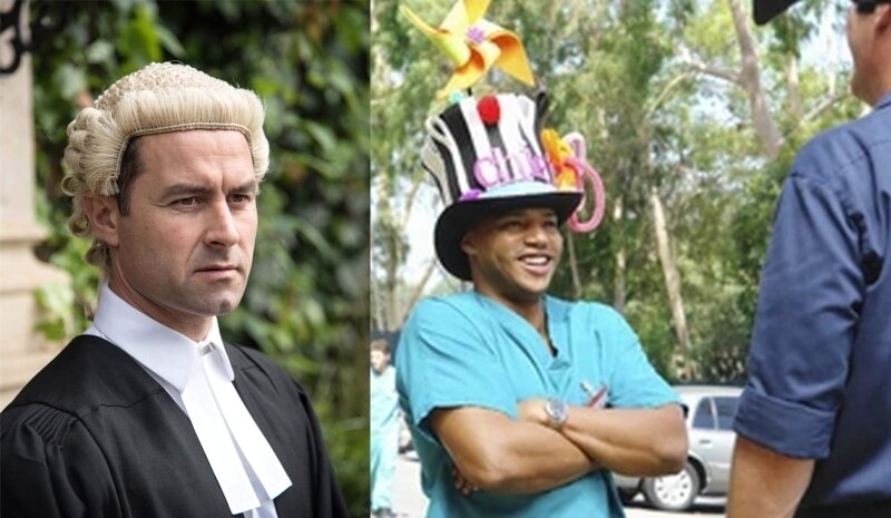 В принципе, им можно было бы нацепить идиотские парички, как это принято у англосаксов. Но это не очень разумно, поскольку парик традиционно это часть придворного костюма, а у нас — республика. Но можно заставить их носить в судах красивую шляпу, как на картинке.