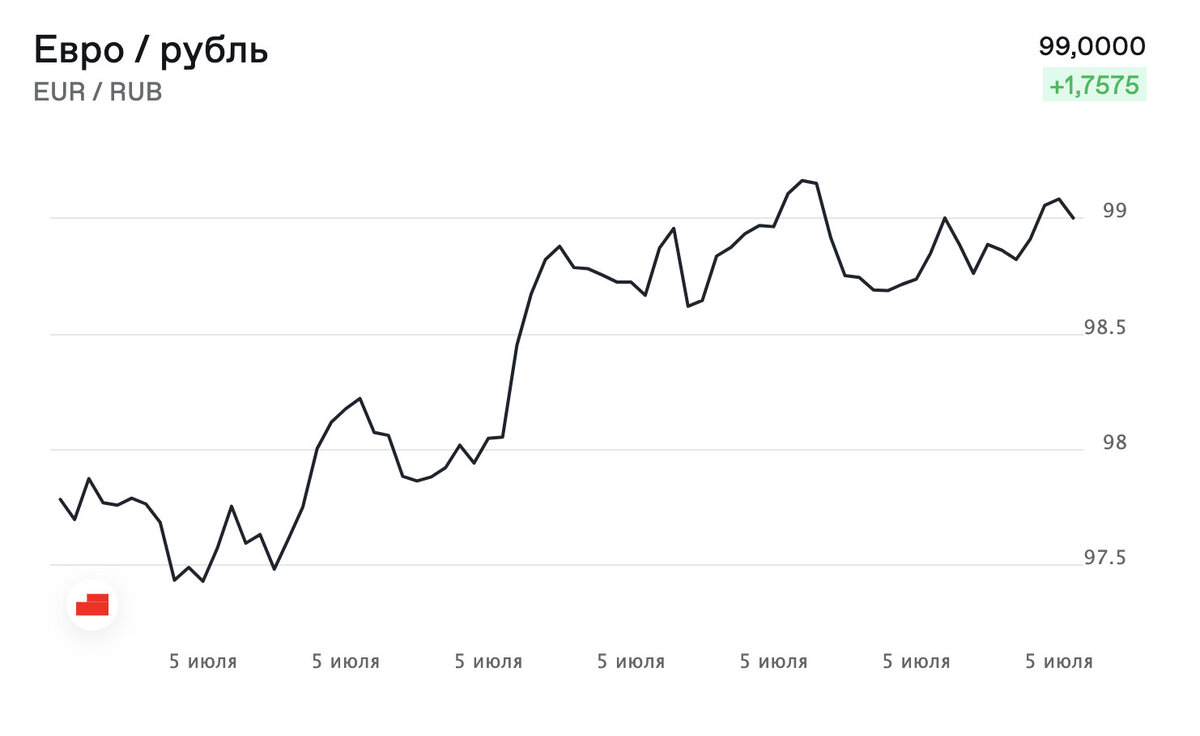 Доллар и евро уверенно растут. Взятые рекорды не сдались к закрытию биржи К закрытию торгов на Московской бирже доллар и евро не сдали позиций, занятых на протяжении дня 5 июля. Рекордные значения зафиксированы, следует из данных торгов. Так, евро остановился на отметке 99 рублей, прибавив к утреннему показателю 1,7575 рубля. Доллар стоил 91 рубль (плюс 1,82 рубля). Оба значения — рекорд 2023 года. Согласно официальному курсу Центрального банка, установленному на 6 июля, доллар стоит 90,3380 рубля, евро — 98,4144. Курс валюты не стабилизируется с прошлой недели. Тогда доллар резко прибавил 6 рублей. Евро за несколько дней вырос на 5,5 рублей. На фоне падения рубля ЦБ планирует впервые с сентября 2022 года повысить ставку. Подробнее о том, почему и на сколько, читайте в материале «Фонтанки».