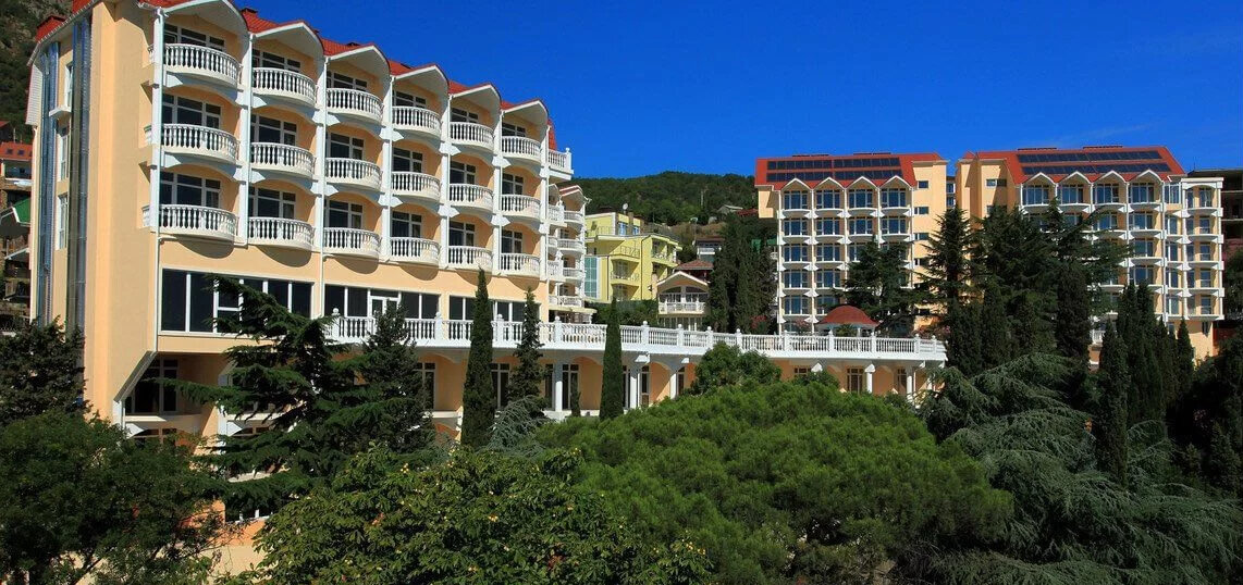 Отель расположен у подножия горы Кастель на Южном берегу Крыма в Профессорском уголке г Алушта., 250 метров от моря.