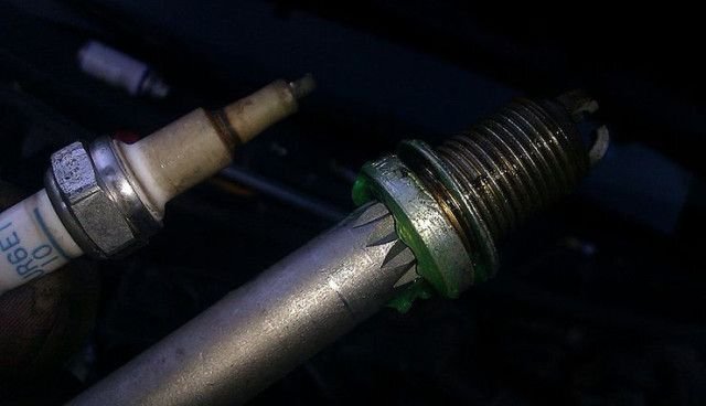 Часто это происходит в самый неподходящий момент Сломанная свеча зажигания в бензиновом двигателе – явление не массовое, но такие проблемы случаются. Это может быть связано как с браком самой свечи, так и с тем , что запчасть "закисла" и попытка ее выкрутки привела к рассматриваемым печальным последствиям. Мы расскажем вам, что вы можете сделать, если такая проблема возникает. Обычно у свечи ломается гофр изолятора или резьбовая часть остается в ГБЦ. В первом случае в руках водителя остается кусок изолятора, а во втором - сама свеча без части электрода. Оба случая неприятны, так как двигатель с такими свечами нормально работать не будет. Значит нужно найти способ удалить остатки этой детали и установить новую. Решить проблему можно как устаревшими методами, так и купив подходящее средство. Если идти по простому пути, который оказывается самым затратным, то придется покупать так называемые экстракторы в магазине. Внешне они похожи на сверла, но имеют действие обратной спирали. Благодаря